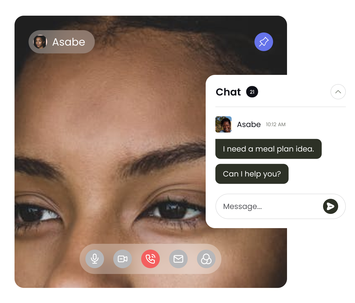Asabe is here to guide you through every aspect of your wellness journey. From designing personalized meal plans to creating fitness routines, she’s your go-to for expert advice, motivation, and inspiration, all tailored to your unique lifestyle. When something needs a human, she routes you to your nurse or GP. She is supportive, never pushy, and she does not diagnose.